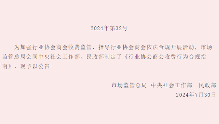市场监管总局 中央社会工作部 民政部关于发布《行业协会商会收费行为合规指南》的公告...